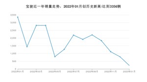 2023年1月,全国汽车总销量为888057辆,宝骏品牌的销量占比为0.03%,在所有汽车企业销量排名中位列第66名。2022年01月-2023年01月份,全国汽车总销量为16923490辆,宝骏品牌的销量占比为0.13%,在所有汽车企业销量排名中位列第56名。