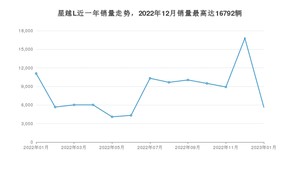 2023年1月,星越L销量为5635辆,同比下降49.21%,环比下降66.44%。2022年01月-2023年01月份,星越L销量为108047辆,同比增长96.38%。