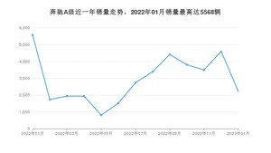 2023年1月,奔驰A级销量为2212辆,同比下降60.27%,环比下降51.92%。2022年01月-2023年01月份,奔驰A级销量为38144辆,同比下降41.32%。