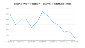 2023年1月,雷克萨斯RX销量为472辆,同比下降90.29%,环比下降73.81%。2022年01月-2023年01月份,雷克萨斯RX销量为41757辆,同比下降21.93%。