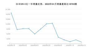 2023年1月,本田XR-V销量为917辆,同比下降95.12%,环比下降61.89%。2022年01月-2023年01月份,本田XR-V销量为96555辆,同比下降52.7%。