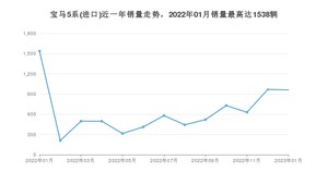 2023年1月,宝马5系(进口)销量为962辆,同比下降37.45%,环比下降0.72%。2022年01月-2023年01月份,宝马5系(进口)销量为8309辆,同比下降42.56%。