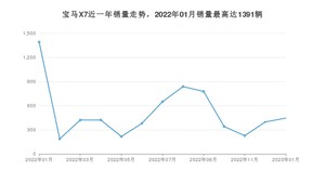 2023年1月,宝马X7销量为445辆,同比下降68.01%,环比增长12.09%。2022年01月-2023年01月份,宝马X7销量为6687辆,同比下降46.51%。
