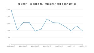 2023年1月,冒险家销量为1953辆,同比下降59.74%,环比下降26.66%。2022年01月-2023年01月份,冒险家销量为36557辆,同比下降32.86%。