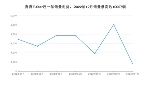 2023年1月,奔奔E-Star销量为1628辆,同比下降76.36%,环比下降83.83%。2022年01月-2023年01月份,奔奔E-Star销量为43221辆,同比下降47.36%。