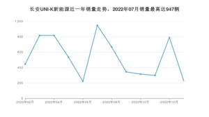 2023年1月,长安UNI-K新能源销量为225辆,环比下降71.55%。2022年01月-2023年01月份,长安UNI-K新能源销量为6418辆,同比增长21%。