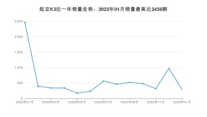 2023年1月,起亚K3销量为286辆,同比下降88.36%,环比下降70.64%。2022年01月-2023年01月份,起亚K3销量为7521辆,同比下降70.76%。