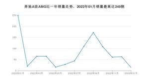 2023年1月,奔驰A级AMG销量为14辆,同比下降94.38%,环比下降77.78%。2022年01月-2023年01月份,奔驰A级AMG销量为1015辆,同比下降56.61%。