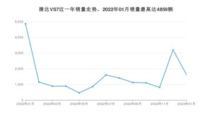 2023年1月,捷达VS7销量为1616辆,同比下降66.74%,环比下降49.66%。2022年01月-2023年01月份,捷达VS7销量为19956辆,同比下降56.46%。