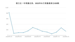 2023年1月,楼兰销量为143辆,同比下降82.56%,环比下降47.81%。2022年01月-2023年01月份,楼兰销量为2606辆,同比下降82.3%。