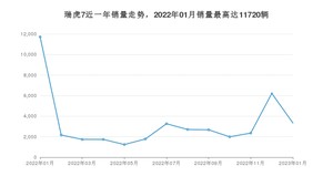 2023年1月,瑞虎7销量为3340辆,同比下降71.5%,环比下降46.28%。2022年01月-2023年01月份,瑞虎7销量为42909辆,同比下降25.56%。