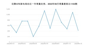 2023年1月,迈腾GTE插电混动销量为414辆,同比下降32.79%,环比下降61.77%。2022年01月-2023年01月份,迈腾GTE插电混动销量为8782辆,同比增长121.88%。