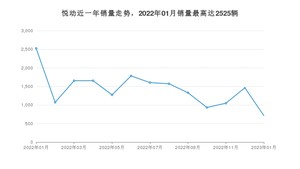 2023年1月,悦动销量为714辆,同比下降71.72%,环比下降51.2%。2022年01月-2023年01月份,悦动销量为18624辆,同比下降59.68%。
