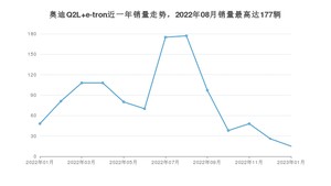 2023年1月,奥迪Q2L e-tron销量为15辆,同比下降68.75%,环比下降42.31%。2022年01月-2023年01月份,奥迪Q2L e-tron销量为1071辆,同比下降77.18%。