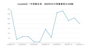 2023年1月,Levante销量为196辆,同比下降41.32%,环比下降24.9%。2022年01月-2023年01月份,Levante销量为2062辆,同比下降55.18%。