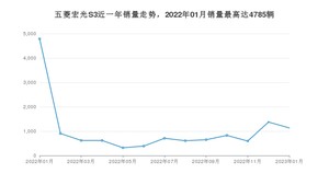 2023年1月,五菱宏光S3销量为1133辆,同比下降76.32%,环比下降17.54%。2022年01月-2023年01月份,五菱宏光S3销量为13534辆,同比下降65.29%。