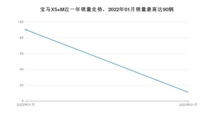 2023年1月,宝马X5 M销量为11辆,同比下降87.78%,2022年01月-2023年01月份,宝马X5 M销量为101辆,同比下降87.55%。