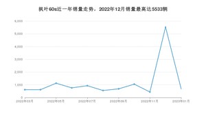 2023年1月,枫叶60s销量为676辆,环比下降87.78%。2022年01月-2023年01月份,枫叶60s销量为12979辆,