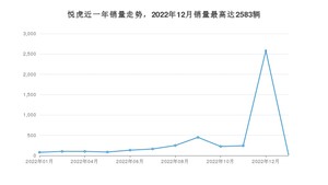 2023年1月,悦虎销量为23辆,同比下降71.25%,环比下降99.11%。2022年01月-2023年01月份,悦虎销量为4437辆,同比增长426.33%。
