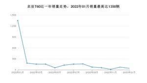 2023年1月,启辰T60销量为41辆,同比下降96.96%,环比下降43.84%。2022年01月-2023年01月份,启辰T60销量为2604辆,同比下降83.88%。