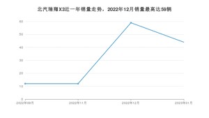 2023年1月,北汽瑞翔X3销量为44辆,环比下降25.42%。2022年01月-2023年01月份,北汽瑞翔X3销量为127辆,
