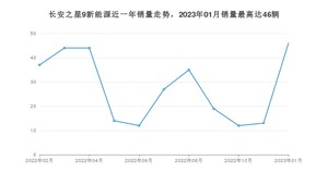 2023年1月,长安之星9新能源销量为46辆,2022年01月-2023年01月份,长安之星9新能源销量为303辆,