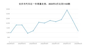 2023年2月,安庆市汽车总销量为1163辆,同比增长16.53%,环比下降49.7%。2022年02月-2023年02月份,安庆市总销量为24590辆,同比下降37.32%。在最近1年中,安庆市销量在2022年12月达到最高,销量为3402辆。