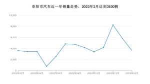 2023年2月,阜阳市汽车总销量为3630辆,同比增长0.67%,环比下降37.53%。2022年02月-2023年02月份,阜阳市总销量为52932辆,同比下降29.26%。在最近1年中,阜阳市销量在2022年12月达到最高,销量为8255辆。