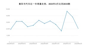 2023年2月,襄阳市汽车总销量为2033辆,同比增长4.63%,环比下降46.54%。2022年02月-2023年02月份,襄阳市总销量为37252辆,同比下降37.8%。在最近1年中,襄阳市销量在2022年12月达到最高,销量为4669辆。
