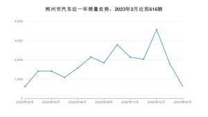 2023年2月,郴州市汽车总销量为616辆,同比下降0.65%,环比下降65.68%。2022年02月-2023年02月份,郴州市总销量为23019辆,同比下降39.63%。在最近1年中,郴州市销量在2022年12月达到最高,销量为3562辆。