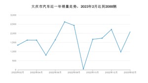 2023年2月,大庆市汽车总销量为2088辆,同比增长54.21%,环比增长114.15%。2022年02月-2023年02月份,大庆市总销量为20841辆,同比下降41.62%。在最近1年中,大庆市销量在2022年07月达到最高,销量为2627辆。