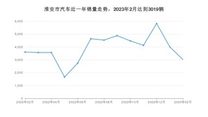 在2023年2月的全国地区销量排名中,淮安市以3019辆的销量位列第71名,上海市以33549辆的销量位列第1名,成都市以30947辆的销量位列第2名。