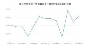 2023年2月,邢台市汽车总销量为6449辆,同比增长57.25%,环比增长33.85%。2022年02月-2023年02月份,邢台市总销量为59622辆,同比下降26.99%。在最近1年中,邢台市销量在2022年12月达到最高,销量为7654辆。