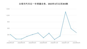 2023年2月,白银市汽车总销量为393辆,同比增长28.85%,环比下降32.94%。2022年02月-2023年02月份,白银市总销量为4611辆,同比下降59.45%。在最近1年中,白银市销量在2022年12月达到最高,销量为1357辆。