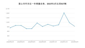 2023年2月,眉山市汽车总销量为927辆,同比增长10.62%,环比下降21.24%。2022年02月-2023年02月份,眉山市总销量为13430辆,同比下降49.57%。在最近1年中,眉山市销量在2022年12月达到最高,销量为1826辆。