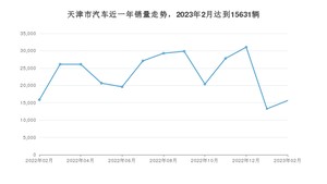 2023年2月,天津市汽车总销量为15631辆,同比下降1.48%,环比增长18.02%。2022年02月-2023年02月份,天津市总销量为302641辆,同比下降18.54%。在最近1年中,天津市销量在2022年12月达到最高,销量为31053辆。