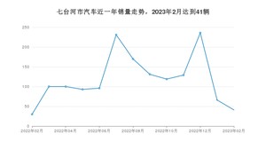 2023年2月,七台河市汽车总销量为41辆,同比增长36.67%,环比下降37.88%。2022年02月-2023年02月份,七台河市总销量为1542辆,同比下降70.08%。在最近1年中,七台河市销量在2022年12月达到最高,销量为236辆。