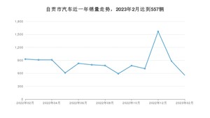 2023年2月,自贡市汽车总销量为557辆,同比下降39.98%,环比下降36.85%。2022年02月-2023年02月份,自贡市总销量为10851辆,同比下降50.95%。在最近1年中,自贡市销量在2022年12月达到最高,销量为1569辆。