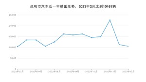 2023年2月,昆明市汽车总销量为10461辆,同比增长1.1%,环比下降7.14%。2022年02月-2023年02月份,昆明市总销量为182132辆,同比下降24.25%。在最近1年中,昆明市销量在2022年12月达到最高,销量为22595辆。