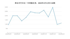 2023年2月,清远市汽车总销量为1149辆,同比增长20.69%,环比增长17.73%。2022年02月-2023年02月份,清远市总销量为24811辆,同比下降30.57%。在最近1年中,清远市销量在2022年12月达到最高,销量为2964辆。