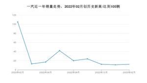 在国内市场上,一汽,在2023年2月的销量为12辆,同比下降88.57%,环比增长9.09%。2022年02月-2023年02月份,一汽累计销量为256辆,较去年同期下降66.49%。