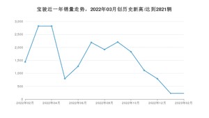 在国内市场上,宝骏,在2023年2月的销量为228辆,同比下降84.18%,环比增长0.44%。2022年02月-2023年02月份,宝骏累计销量为19653辆,较去年同期下降81.16%。