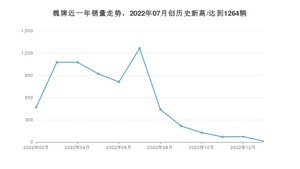 在国内市场上,魏牌,在2023年2月的销量为13辆,同比下降97.23%,2022年02月-2023年02月份,魏牌累计销量为6556辆,较去年同期下降62.75%。