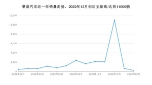 睿蓝汽车 2月份销量数据发布 同比下降49.42%(2023年)