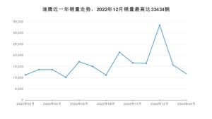 2023年2月,速腾销量为11701辆,同比增长3.93%,环比下降25.4%。2022年02月-2023年02月份,速腾销量为207001辆,同比下降14.6%。