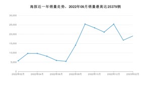 2023年2月,海豚销量为18994辆,同比增长232%,环比增长13.5%。2022年02月-2023年02月份,海豚销量为189579辆,同比增长431.91%。