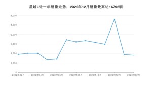 2023年2月,星越L销量为5396辆,同比下降4.77%,环比下降4.24%。2022年02月-2023年02月份,星越L销量为102349辆,同比增长68.66%。
