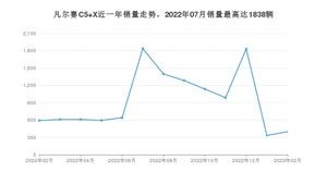 2023年2月,凡尔赛C5 X销量为400辆,同比下降32.55%,环比增长20.12%。2022年02月-2023年02月份,凡尔赛C5 X销量为12258辆,同比下降8.13%。