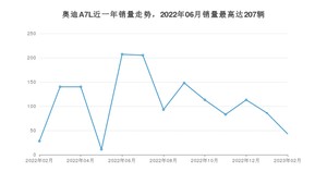 2023年2月,奥迪A7L销量为43辆,同比增长53.57%,环比下降50%。2022年02月-2023年02月份,奥迪A7L销量为1410辆,同比增长287.36%。