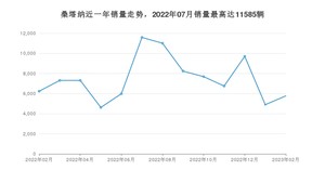2023年2月,桑塔纳销量为5769辆,同比下降7.47%,环比增长17.85%。2022年02月-2023年02月份,桑塔纳销量为97091辆,同比下降39.97%。